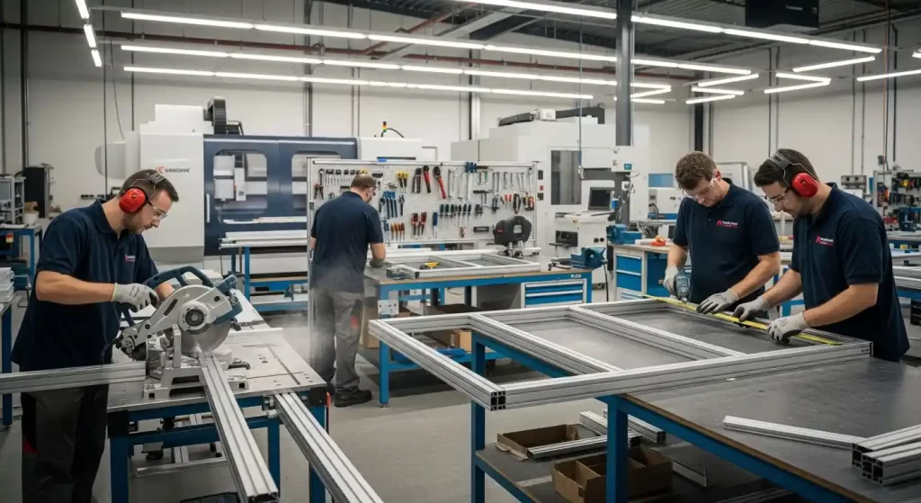 الفريق عندنا يتكوّن من فنيين محترفين ومهندسين مختصين في أنظمة الألمنيوم الحديثة، ونعتمد في شغلنا على معايير هندسية دقيقة تضمن جودة الشغل وثبات القطع على المدى الطويل.